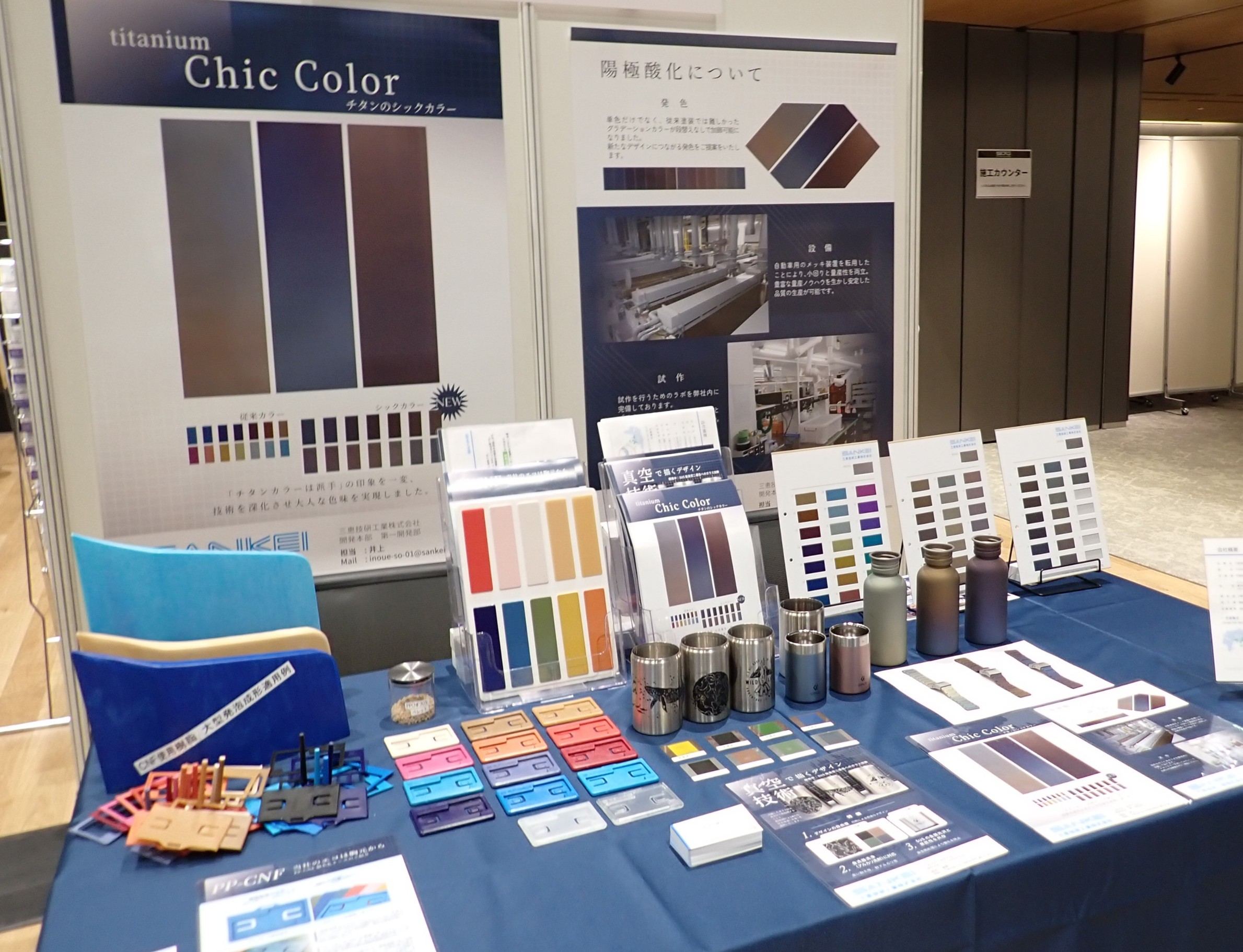 展示品:チタン陽極酸化(シックカラー)、真空技術で描くガラス加飾、PP-CNF樹脂